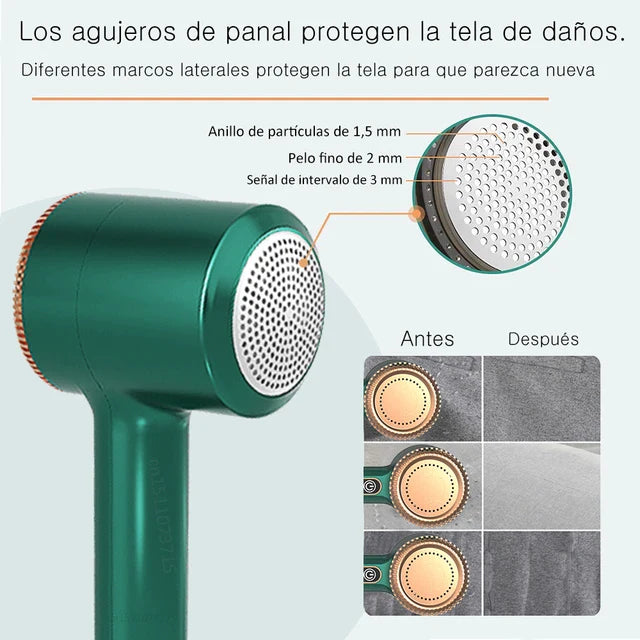Removedor mágico: Con tecnología avanzada, este removedor de pelusas se convierte en tu aliado para mantener una ropa sin pelusas y de aspecto fresco. Su potente motor y cuchillas de calidad garantizan resultados profesionales, revitalizando tus prendas favoritas con cada uso.